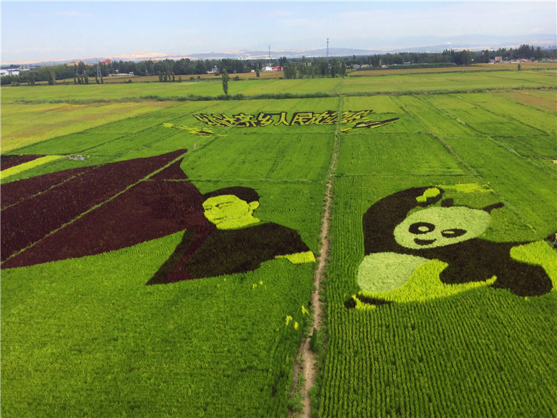 7月到8月,新疆察布查爾錫伯自治縣納達齊牛錄鄉稻田畫基地迎來最佳觀賞期,“戰狼”“功夫熊貓”等主題稻田畫吸引疆內外不少游客前來觀光。