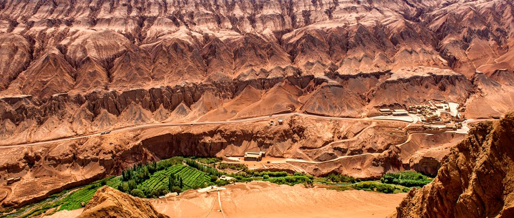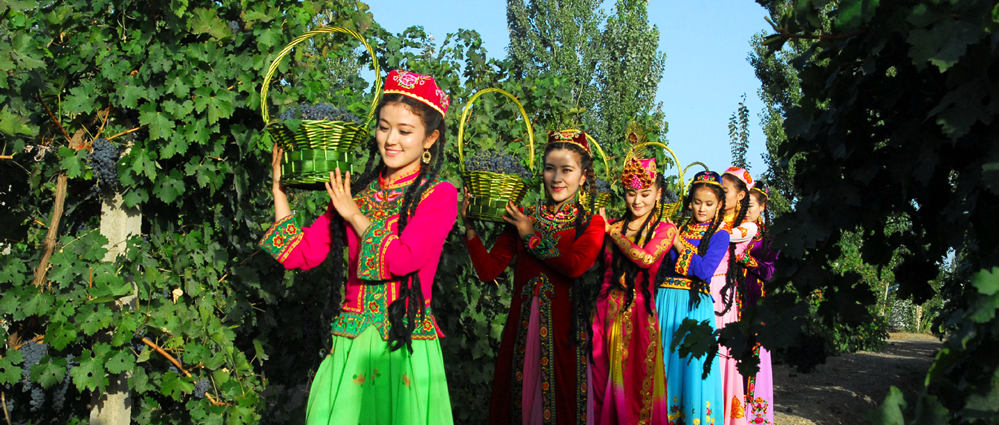 【葡萄溝】美麗富饒的葡萄溝以盛產葡萄而聞名于世,全長八公里,東西寬約兩公里,葡萄溝河橫貫其間。每逢夏季,火焰山上炙日炎炎、寸草不生,葡萄溝內卻流水潺潺、綠樹如蔭、涼爽怡人,平均氣溫比市區內低三至五度,是“火洲”吐魯番的清涼世界。景區內有集中展示葡萄文化和葡萄酒文化為一體的葡萄溝游樂園。