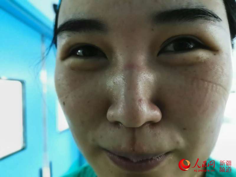 摘了口罩后臉上布滿了勒痕。