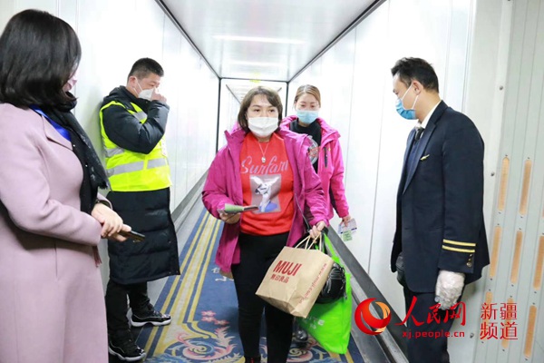 新疆第二批援鄂醫療隊乘坐飛機向武漢出發。