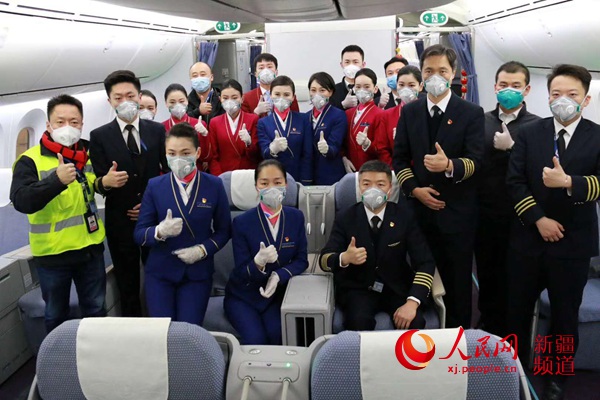 新疆第二批援鄂醫療隊所乘坐包機的機組人員。