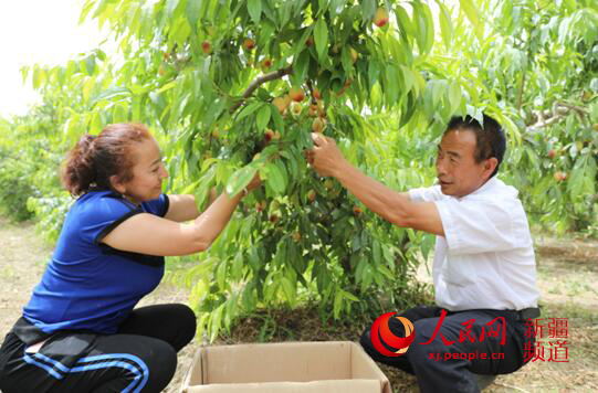 村民正在采摘桃子。王延琪 攝