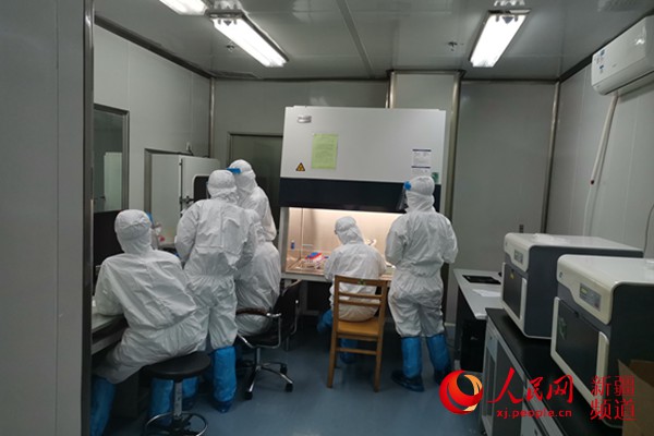 湖北核酸檢測醫療隊抵達烏魯木齊后立即投入工作。新醫大五附院供圖
