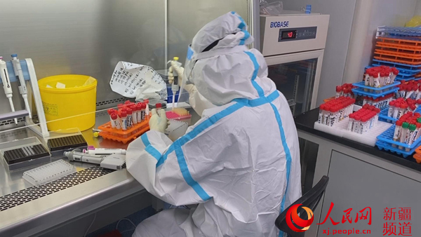 “最初接收到這個任務的時候,還是挺心顫的,因為醫學檢驗中心以往核酸日檢測量只有幾千份,但接到的任務卻是七天要完成45萬份的檢測任務,算下來核酸日檢測量將會暴增到近七萬份!睆埛宀ㄕf。7月17日晚上,新疆醫科大學第一附屬醫院接到上級指令,醫院醫學檢驗中心被指定為烏魯木齊市全民免費核酸檢測工作的定點檢測機構。