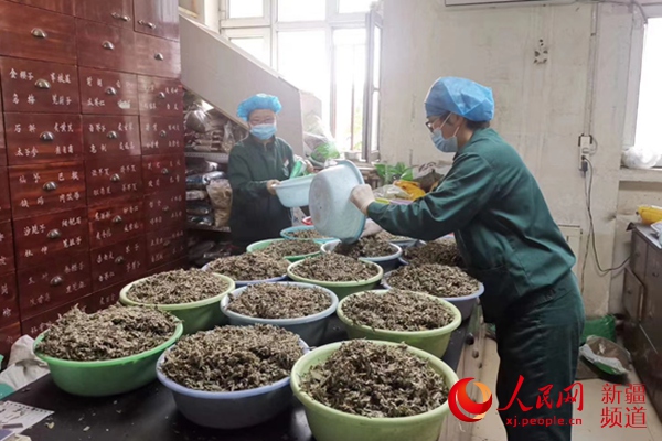 新疆渡洲中醫院為烏魯木齊市的干部群眾煎煮防疫中藥。辛統軒 攝