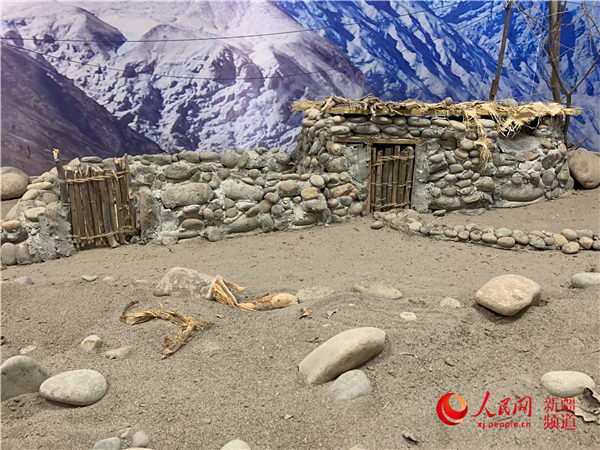 搬遷紀念館里搭建的農牧民在山上居住的石頭房模型。楊睿 攝