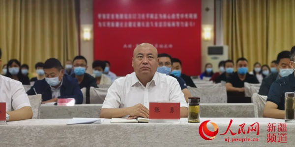 張勇和芳草湖農場黨員干部一起觀看全國抗擊新冠肺炎疫情表彰大會。