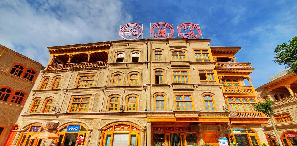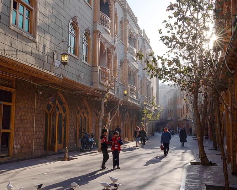 漫步在團城,可以看到這里的建筑以多種風格共存,體現了當地民族風情。從院落蔓延出來的葡萄藤,順著支架跨越街巷,形成了夏日里獨有的綠色風景。