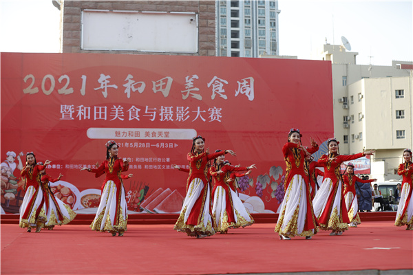 “我宣布,2021年和田美食周及和田美食與攝影大賽開幕!”5月28日晚,隨著主持人的一聲宣布,2021年和田美食周暨和田美食與攝影大賽正式開幕,開幕式上,集體舞、獨唱、戲曲聯奏、雜技、時裝非遺秀等節目輪番上演,精彩的節目贏得觀眾陣陣掌聲。
