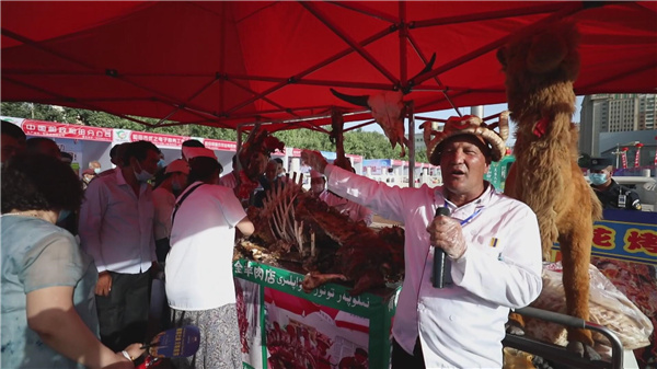 “剛剛品嘗了我們新鮮出爐的烤駱駝,口感非常好,肉質鮮嫩多汁,而且很有營養,也很有彈性,所以我覺得到和田來必須要品嘗和田的燒烤,真的是太好吃了!”游客鄧若琪激動地說。