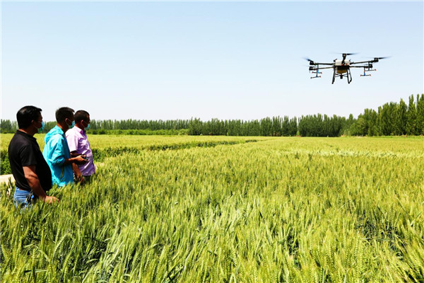 北斗導航無人駕駛播種、測土配方澆水施肥、無人機打藥等一系列高科技的運用,不僅推動了小麥全程機械化、現代化生產模式的發展,同時也極大提高了效率,增加了產量!皬牟シN開始,落實測土配方施肥、滴灌技術、病蟲害綜合防治、無人機打藥等先進現代技術,現在小麥長勢良好,豐收在望!睅燔囀修r業農村局農技推廣站高級農藝師阿布力克木·吐爾遜說道。(庫車市融媒體中心)