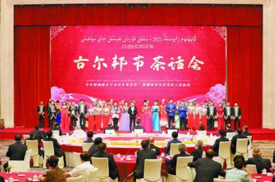 近日,新疆舉行2021年古爾邦節茶話會,各族各界代表歡聚一堂、共慶佳節。崔志堅攝