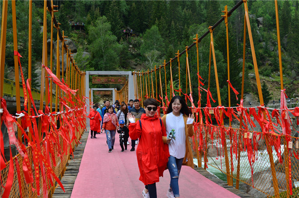 圖為游客在喀納斯景區游玩。胡俊秀攝