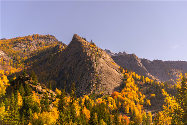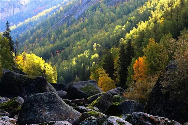 可可托海的秋天,是大自然不小心打翻的調色盤,將油彩灑在可可托海的大地上。白樺林披上金色的盛裝,層林盡染,樹影婆娑;秋風吹過額爾齊斯大峽谷,疊翠流金的林海泛起金色的波浪,氣勢宏偉的花崗巖閃閃發光,在山間留下一幅濃墨重彩的秋之油畫。