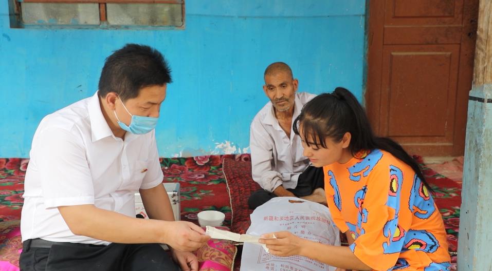 今年65歲的阿不都拉·扎克爾是村里的“四老”人員,6個月之前被確診為胃癌,鄧偉在入戶走訪過程中,了解到阿不都拉·扎克爾家里的困難,與“訪惠聚”工作隊、村干部開會研究,并籌集3000元給他用。