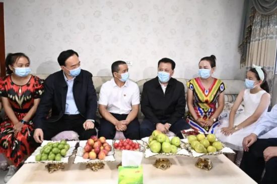 8月18日,省委書記袁家軍抵阿克蘇阿拉爾胡楊社區,慰問維族同胞司馬義·艾木熱拉家庭。