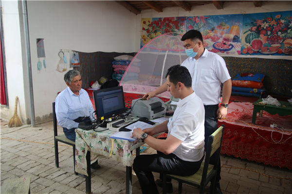 圖為阿瓦提農商銀行烏魯卻勒支行員工上門辦理貸款。王青善攝