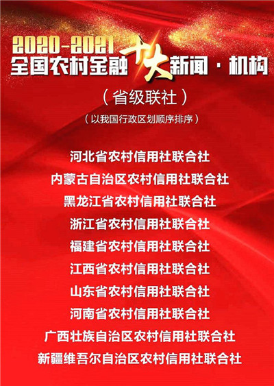 12月27日,由《中華合作時報》組織評選的“2020-2021全國農村金融十大新聞·機構”揭曉,新疆農村信用社聯合社(以下簡稱自治區聯社)憑借所發布新聞稿件的傳播力與影響力,在全國千余家農村金融機構中脫穎而出,入圍十強。這是今年新疆農信宣傳工作斬獲多項殊榮后獲得的又一獎項。