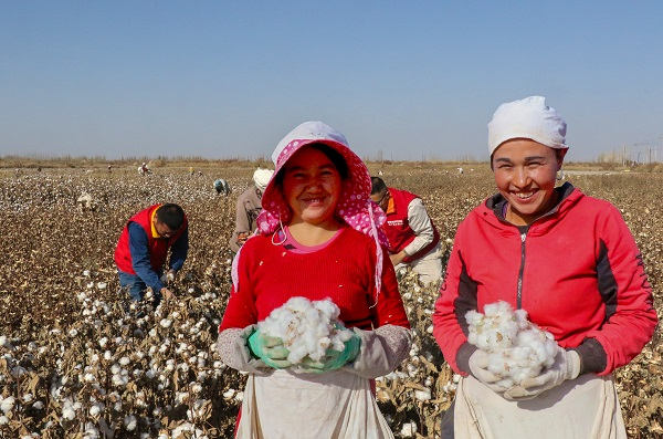 棉田遼闊,“雪浪”翻騰,新疆棉花已成當地的經濟支柱產業,關系到數百萬新疆農民的生計和生活,是名副其實的“致富花”“幸;ā。新疆有一半以上的農民——約700萬人從事棉花生產,其中少數民族約占70%。新疆棉花是當地種植戶的主要收入來源。