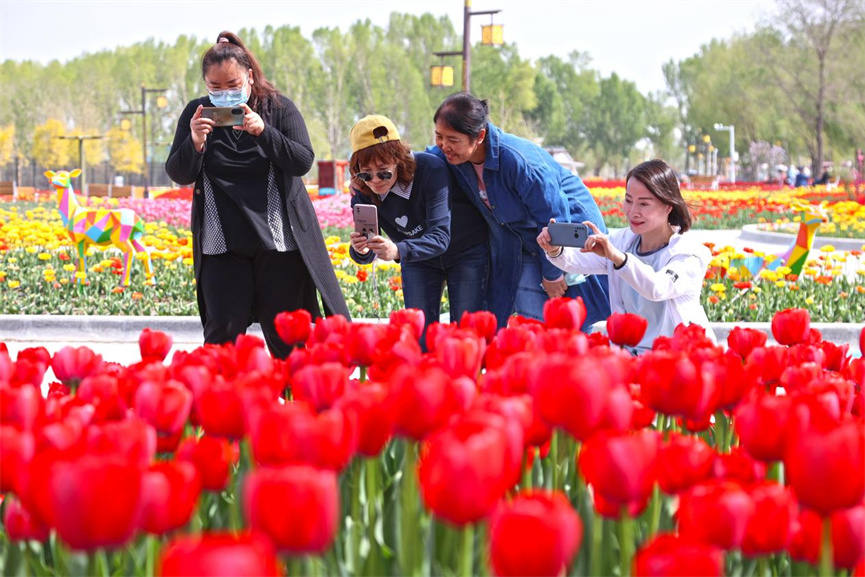 四月的青格達湖畔,320余萬株郁金香競相綻放。4月27日,新疆五家渠市第十七屆郁金香節開幕,隨著該活動知名度的提升,這里已成功躋身“五·一”小長假新疆旅游的打卡地之一。李華北攝
