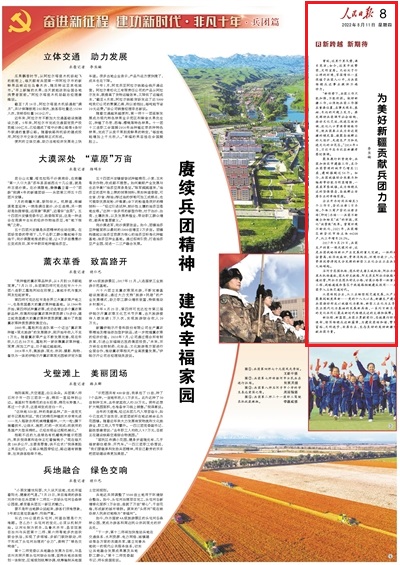 新征程、新藍圖,兵團正勇毅前行,忠誠履行職責使命,續寫維穩戍邊新篇章,為建設團結和諧、繁榮富裕、文明進步、安居樂業、生態良好的美好新疆貢獻兵團力量。