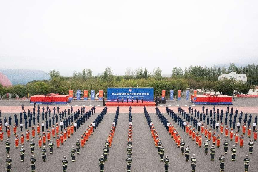 圖為第二屆新疆消防行業職業技能大賽開幕式。米柏燃攝