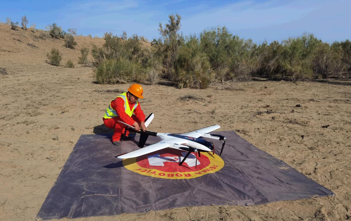 此次飛行任務是由中石化石油工程地球物理有限公司使用兩架飛馬V100固定翼無人機在昌吉執行能源勘探科學實驗任務,主要內容為測試能夠發出無線信號的新型能源物理探測采集設備,通過無人機飛行工作巡檢,收集節點信息,監察節點狀態,是物理能源勘探的一項新技術應用。