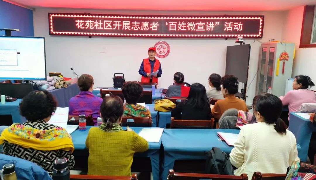近日,水塔山街道花苑社區新時代文明實踐站開展“傳遞黨的好聲音”為主題的微宣講。