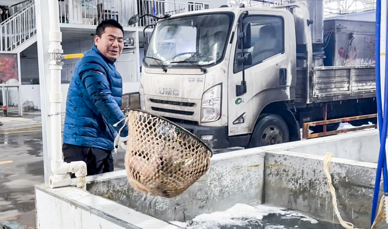 仲亮說,一大早老客戶就來拉水產品了,現在交易大廳環境好,自己和客戶裝卸魚類都很方便。