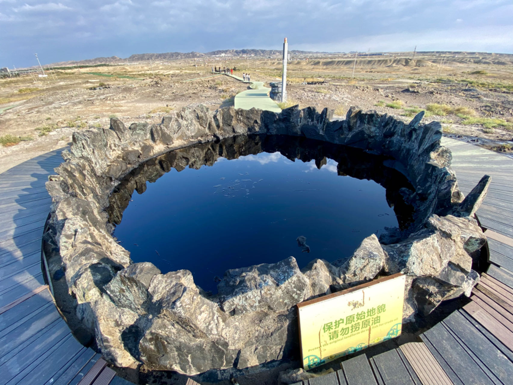 黑油山景區,瀝青丘昭示著石油的奇跡;原油溢出口,展現著奮斗的力量。