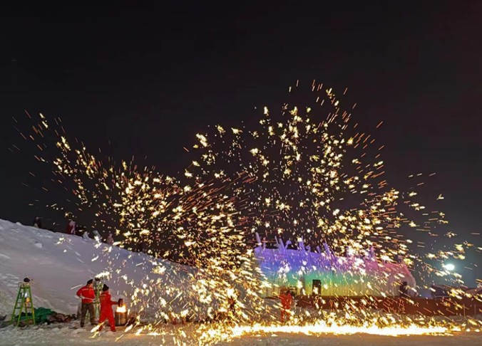 元宵節當晚,絢麗多彩、煙花爛漫的天山明月冰雪城,吸引3000多人前來共同歡度佳節。光影燈光秀、飛天鳳凰表演、打鐵花表演輪番登場,將文化氛圍值和游客興趣值拉滿,使游客在“幻游山海 冰雪奇境”中,暢享“水墨之冬”歡樂冰雪季,整個園區成為一片歡樂的海洋。