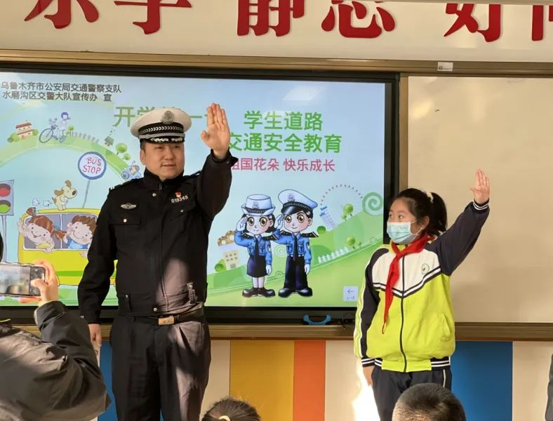 活動中,學校邀請烏魯木齊市公安局交通警察支隊水磨溝區大隊南湖路中隊的民警祁凱,為全校師生帶來了一堂別開生面、寓教于樂的交通安全知識科普講座。
