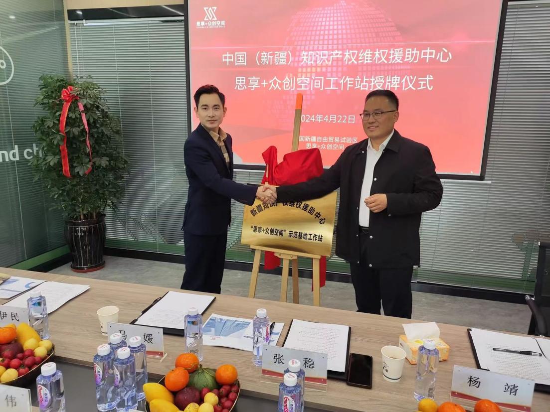 4月22日上午,新疆知識產權維權援助中心“思享+眾創空間”示范基地工作站(簡稱:工作站)掛牌成立。新疆知識產權服務促進中心在“思享+眾創空間”示范基地舉辦了揭牌儀式,并與工作站管理人員、企業代表就當前知識產權維權援助工作相關服務內容、要求、做法、“思享+空間”知識產權保護現狀及需求等進行座談交流。