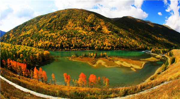 2023年10月5日,臥龍灣的秋天。阿勒泰地區布爾津縣自然資源局 供圖