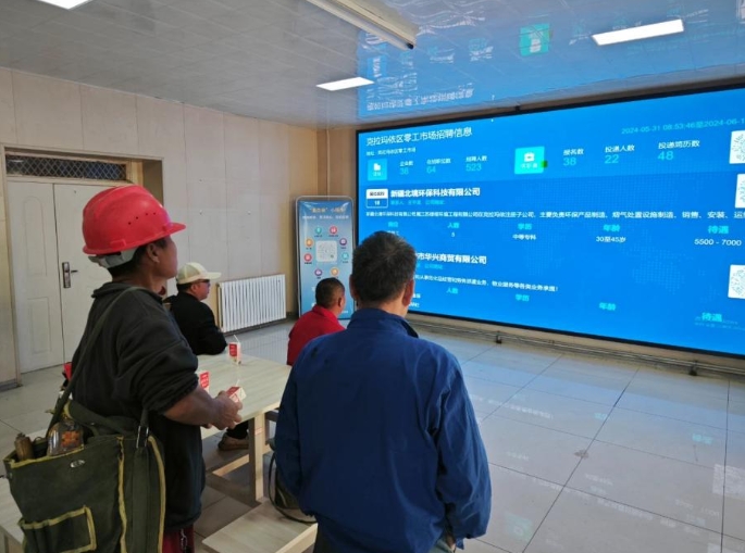 在克拉瑪依區零工市場的院落內,劃分了室內外候工區、服務驛站、工具存放間等區域;零工市場內設置了服務臺口,免費為各類用工主體和零工提供用工招聘信息發布、求職登記、技能培訓、就業援助、政策咨詢、免費早餐等服務,配備就業自助服務一體機、休息座椅、手機充電樁、飲水機等服務設施;通過“涌克來”小程序搭建線上零工市場,為就業供需雙方提供更便利的信息交互平臺,拓寬就業渠道,有效提升用工匹配效率,促進零工就業增收。