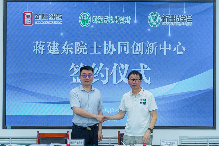 會上,新疆維吾爾藥業有限責任公司黨委書記、董事長尹強,新疆藥物研究所書記、所長邢建國,新疆藥學會理事長、原新疆藥物研究所所長顧政一,分別與蔣建東院士簽約。本著“互惠互利、優勢互補、合作創新、共同發展”的原則,通過企業、科研院所與院士的深度交流合作,匯聚內外創新力量,合力推動新疆生物醫藥事業高質量發展。