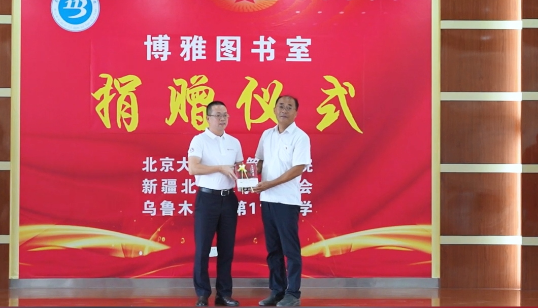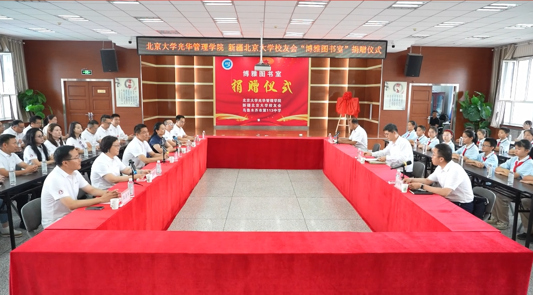 7月17日,新疆首個“博雅圖書室”捐贈儀式在烏魯木齊市第113中學舉行,北京大學光華管理學院及新疆北京大學校友會向學校捐贈圖書。