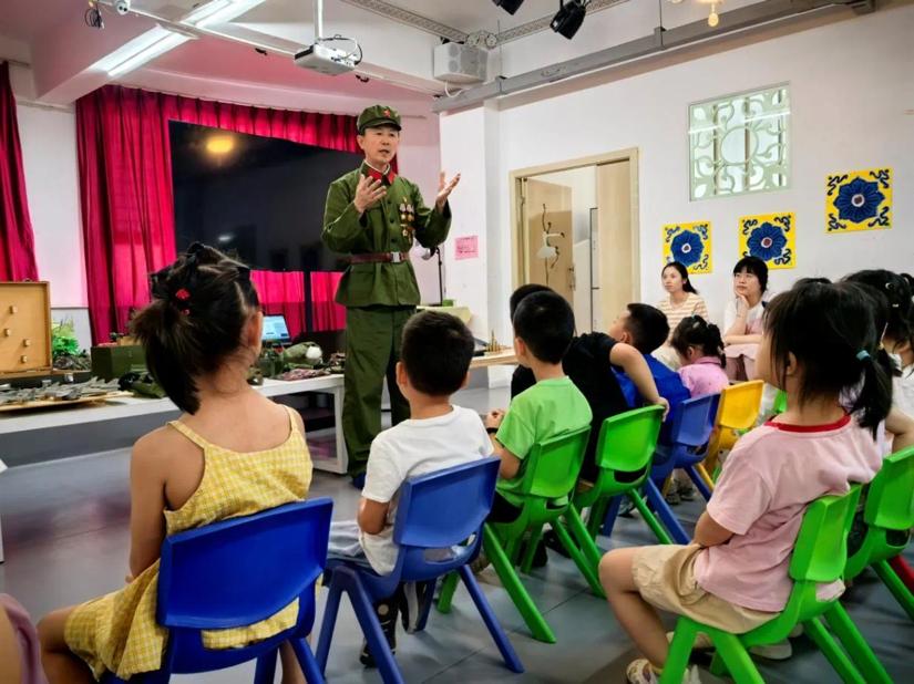 在近日水磨溝區六道灣街道康苑社區組織轄區幼兒園的孩子們開展的愛國主義教育課上,居海林身穿軍裝,以嘹亮的歌聲唱響愛國歌曲,并向小朋友們講述了感人的英雄故事。隨后,他又向小朋友們展示了戰爭年代的人們曾使用的生活用品的復制品,引導孩子們從小樹立正確的理想信念,將來做對國家、對人民、對社會有用的人。