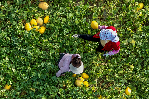 8月6日,市農業科技創新試驗基地瓜果大田,昭君9號甜瓜迎來采收季。