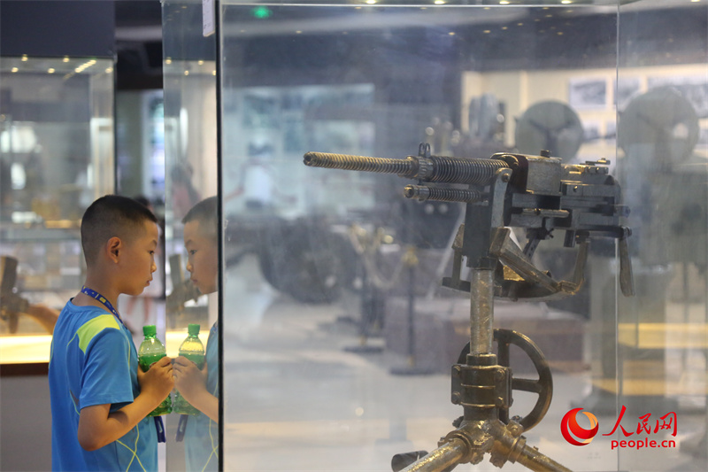 在紀念館內,來自北京的游客正在參觀實物。人民網 李龍攝