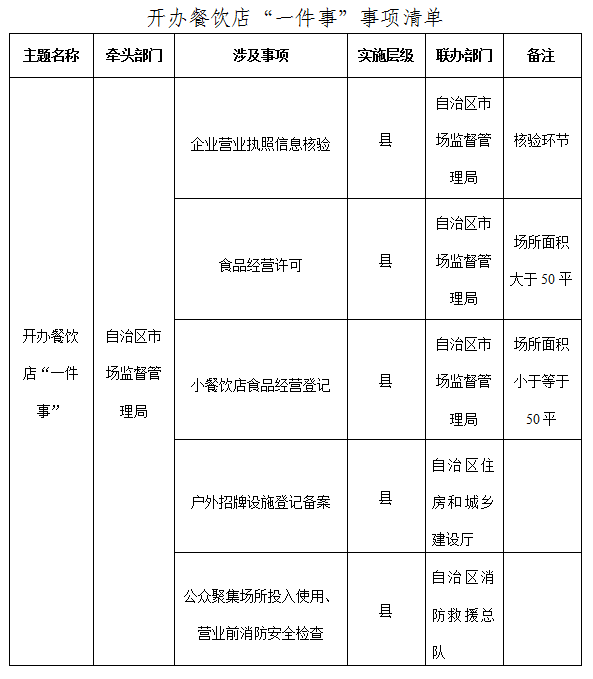 新疆維吾爾自治區高效辦成開辦餐飲店“一件事”業務工作方案
