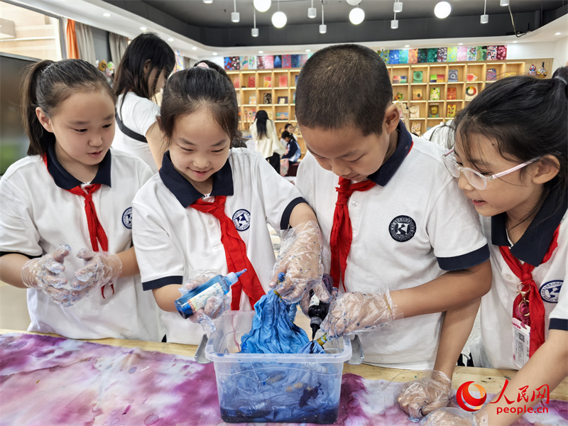 同學們正在學習扎染。人民網記者 陳新輝攝