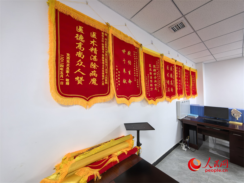 醫生辦公室掛滿了患者送來的錦旗。人民網記者 陳新輝攝