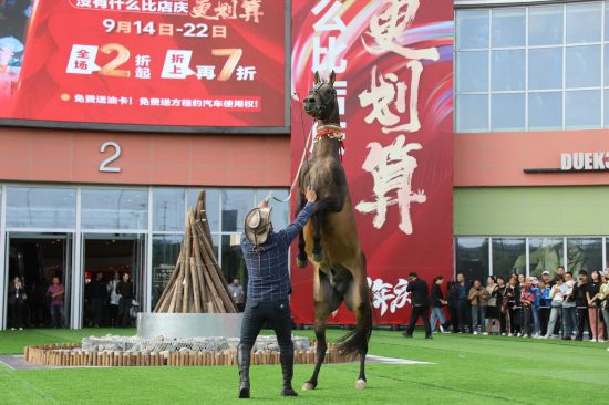 “馬上購物”“馬上婚禮”“馬上有戲”……9月13日,烏魯木齊杉杉奧特萊斯購物廣場舉辦“馬上逛奧萊 杉杉請你來”活動,來自新疆古生態園的23匹汗血寶馬走進購物廣場,與市民、游客共同開啟了一場別開生面的“馬上逛商場”新體驗。