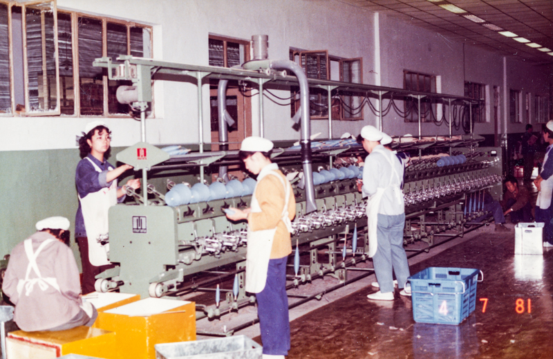 1981年,天山紡織生產車間,工人們正在進行生產作業。