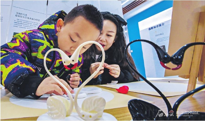 12月1日,家長陪孩子在天鵝藝術館做手工。石榴云/新疆日報記者蔡增樂攝
