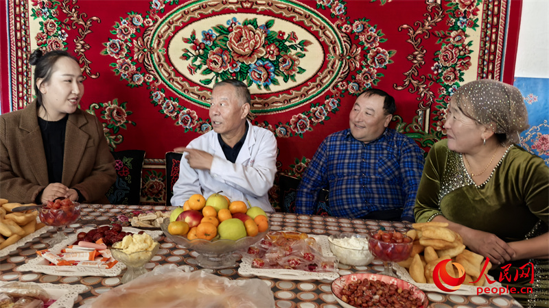 李琳與哈來·卡爾別克一家說起阿依波塔出生時的情景。人民網記者 陳新輝攝