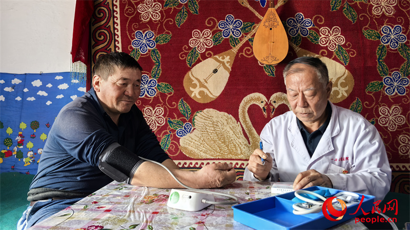 李琳為革命別克·居滿檢查身體,調整高血壓藥的用量。人民網記者 陳新輝攝