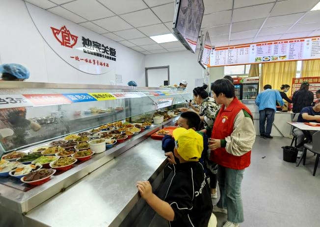 2024年9月,獨山子區新北區街道第十六社區組織“紅細胞”志愿者為就餐學生開展助餐服務。