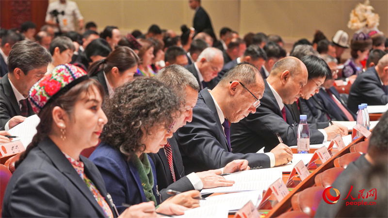自治區十四屆人大三次會議在新疆人民會堂開幕。人民網 李欣洋攝
